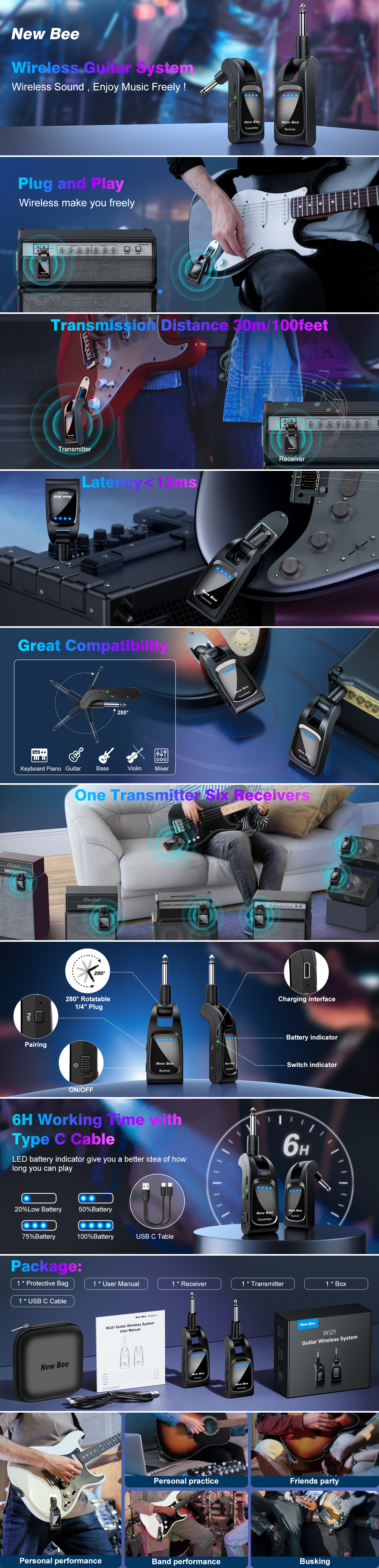 Ditch the cables and embrace versatility. Featuring a 280° rotatable plug, this system fits perfectly on any instrument, from recessed Stratocaster jacks to side-mounted acoustic inputs. Designed for global use, it offers seamless plug-and-play performance for electric guitars, basses, and digital instruments alike.