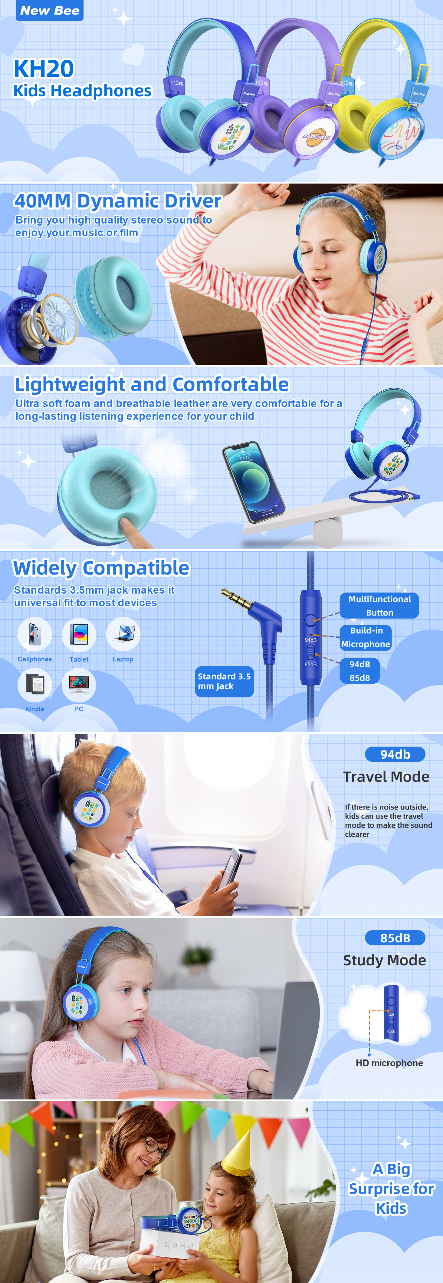 Guardian of your child's auditory health. The KH20 features a switchable volume limiter, offering 85dB for safe everyday learning and 94dB to maintain clarity during noisy travel. This dual-protection system ensures a high-quality listening experience while effectively shielding young ears from harmful noise levels.