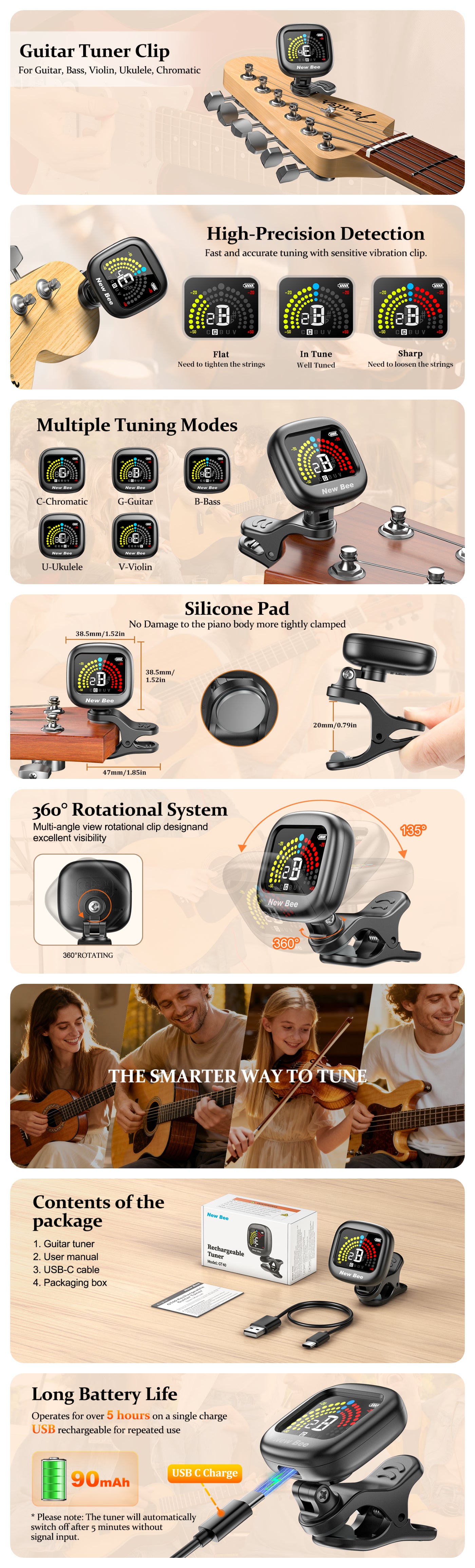 New Bee Guitar Tuner Rechargeable GT40