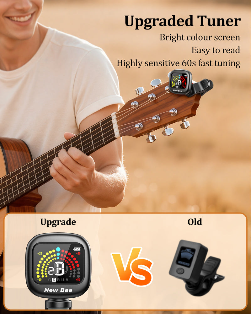 Engineered with an advanced digital processor and high-sensitivity piezo sensor, the New bee guitar tuner delivers exceptionally fast response and studio-accurate tuning for guitar, bass, violin, ukulele, and a wide range of other instruments