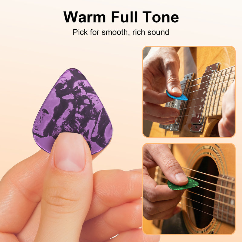 Explore a full spectrum of musical expression with our curated 16-piece collection. Featuring four distinct thicknesses—Thin (0.58mm), Medium (0.71mm), Heavy (0.96mm), and Extra Heavy (1.2mm)—this set allows you to transition effortlessly between delicate acoustic strumming and aggressive electric leads. It is the ultimate toolkit for finding your signature sound across any genre.