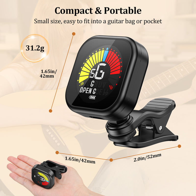 Forget the hassle of disposable batteries. Equipped with a built-in lithium-ion battery, this tuner provides up to 10 hours of continuous use on a single charge. The modern USB-C charging port ensures universal compatibility, so you can power up quickly between sets or during practice sessions.