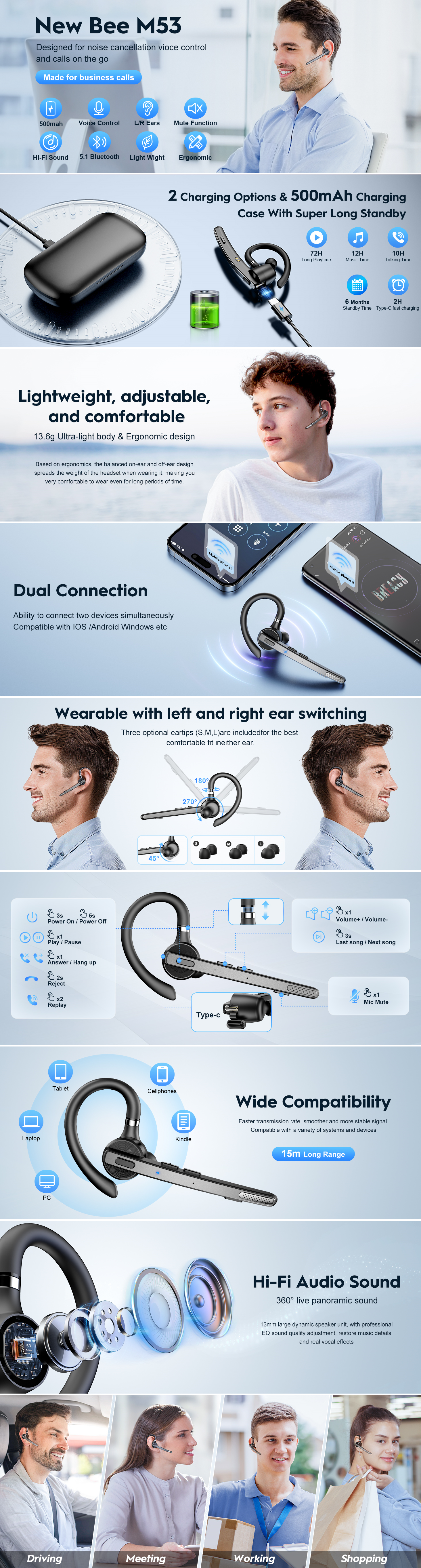 New Bee M53 Wireless Headset
