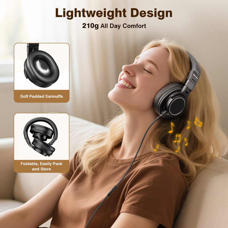 Weighing only 210g, these headphones are built for the marathon creator. The plush memory foam and skin-friendly protein leather cushions provide a soft, breathable seal that minimizes ear fatigue. The lightweight, portable design ensures you remain comfortable through the longest recording sessions or late-night edits.