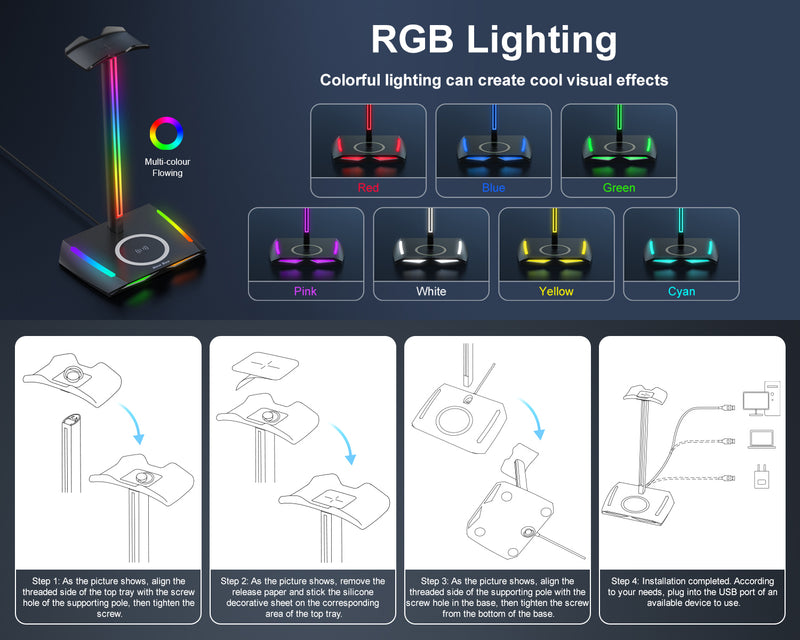RGB Headphone Stand Z12 with Wireless Charging