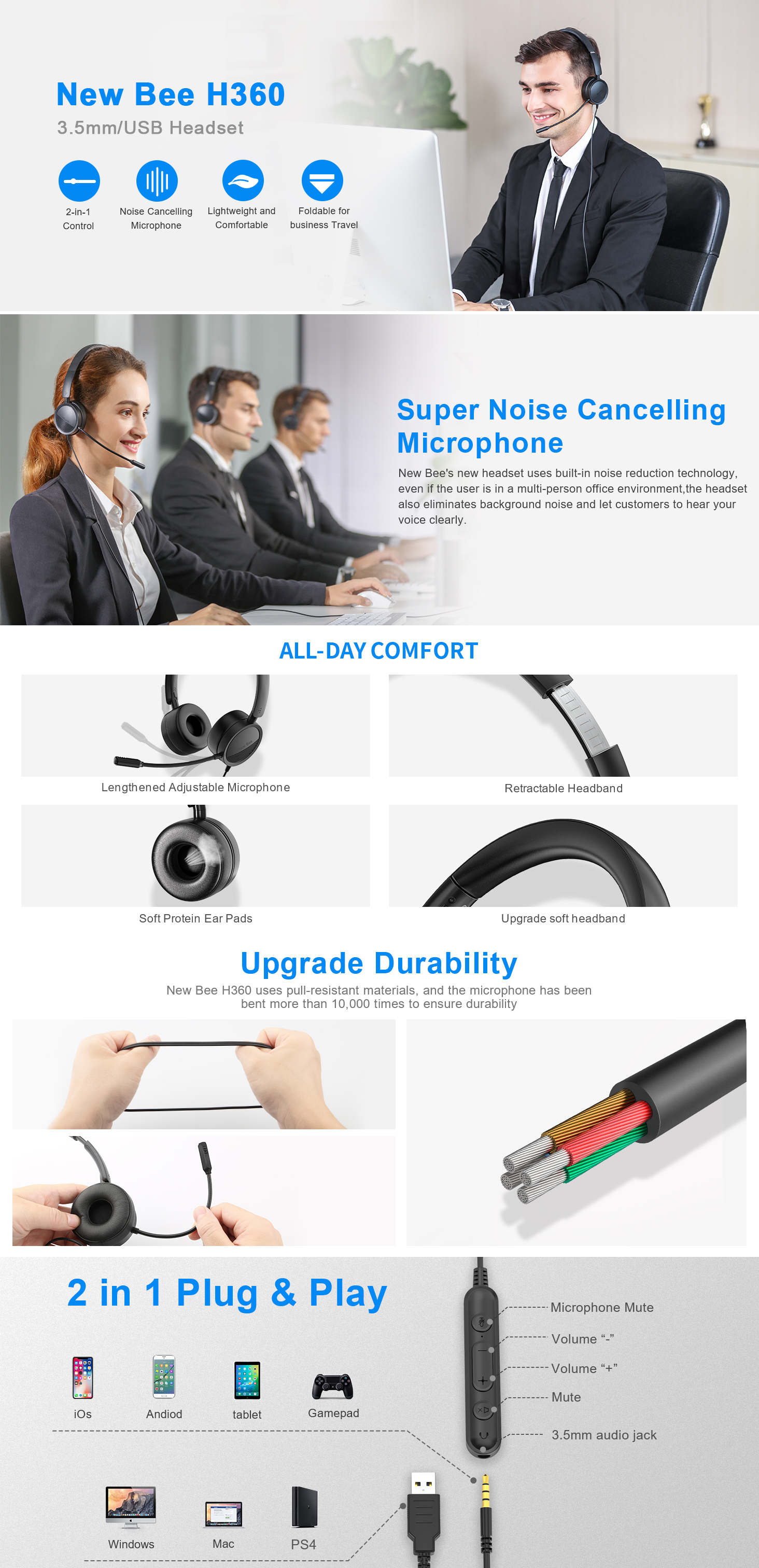 Seamlessly transition between all your devices. With integrated USB and 3.5mm connection options, this headset is compatible with Windows, Mac, iOS, and Android. It is the perfect all-in-one solution for professional office software, mobile calls, or immersive media consumption on your tablet.